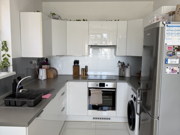Byt disponuje priestrannou obývacou izbou spojenou s kuchyňou, spálňou, malou izbou ktorá sa dá využiť ako ďalšia spálňa alebo šatník, kúpelňou s WC a komorou.
